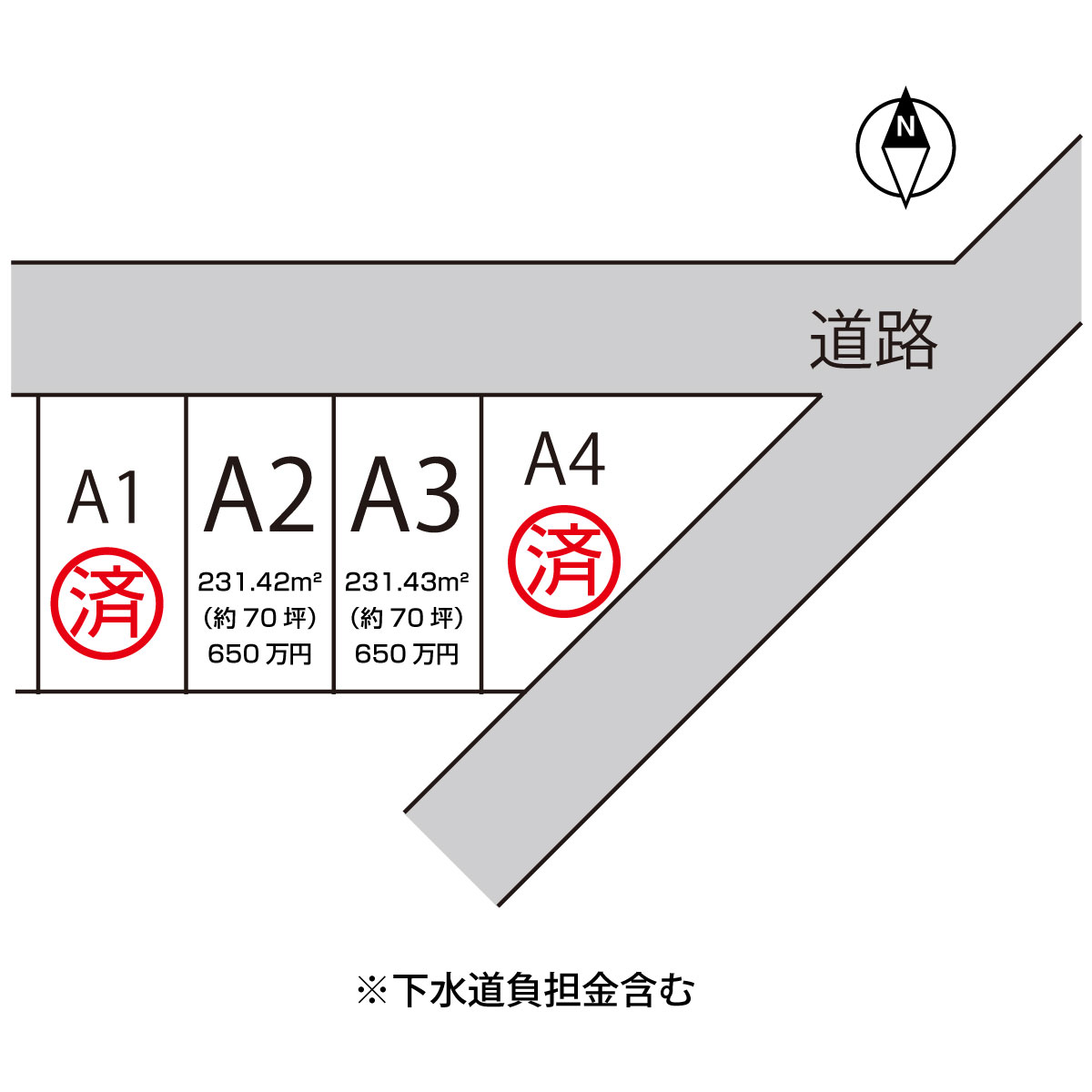 HOME > 不動産物件 > 緑町1丁目分譲地(特産跡地) 2021年10月7日 分譲地概要 所在地 村上市緑町1丁目8番24号 開発総面積 1054.52㎡(319.05坪) 区画数 4区画 地目 宅地 用途地域 第一種住居 建ぺい率 60%以下 容積率 200%以下 分譲価格 建築条件付 9万円/坪〜下水道負担金含む 区画図